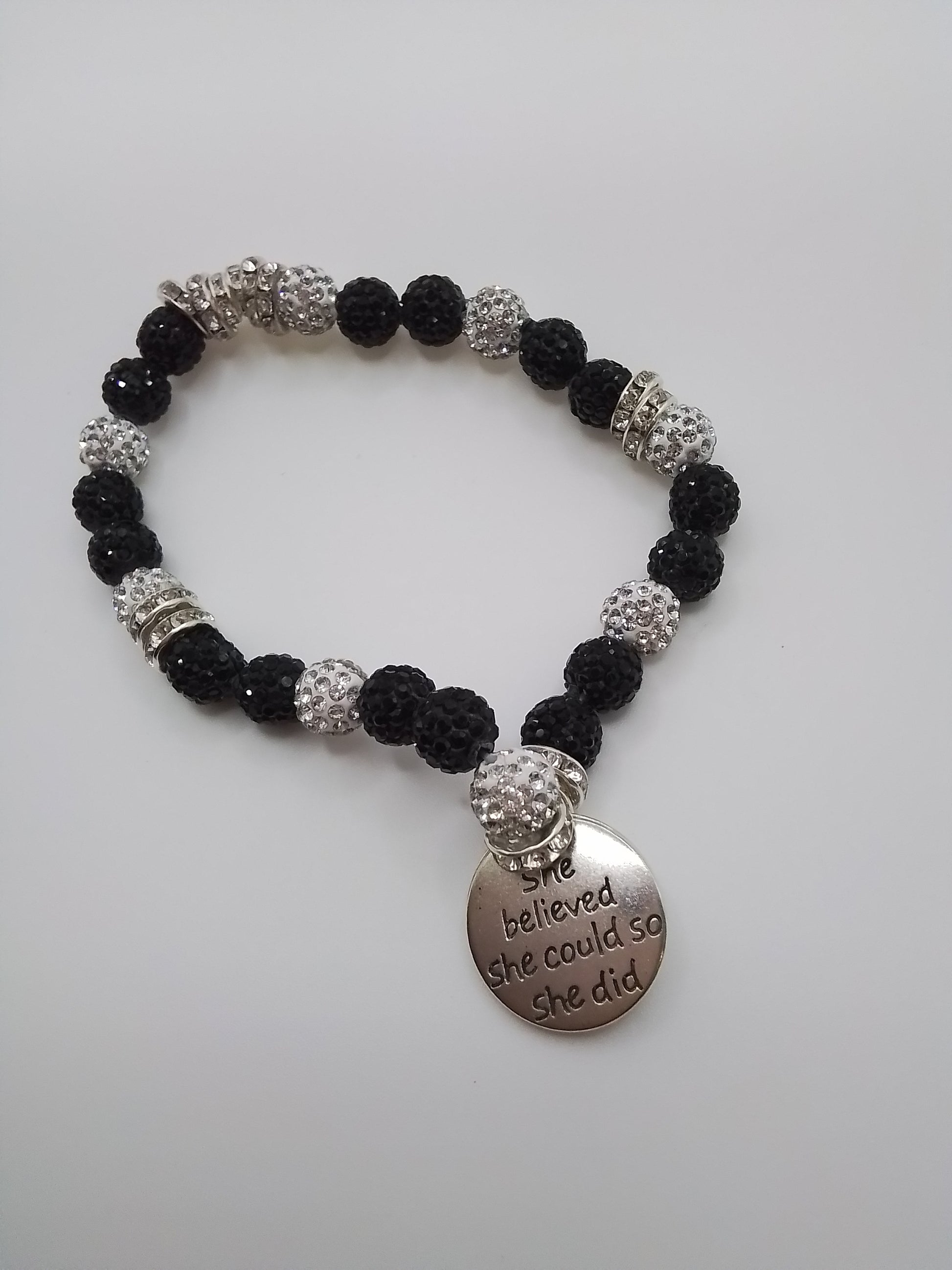 This Bracelet was inspired because Black and White goes with everything, and some of it Blings and some of it doesn't, but it all stands out!